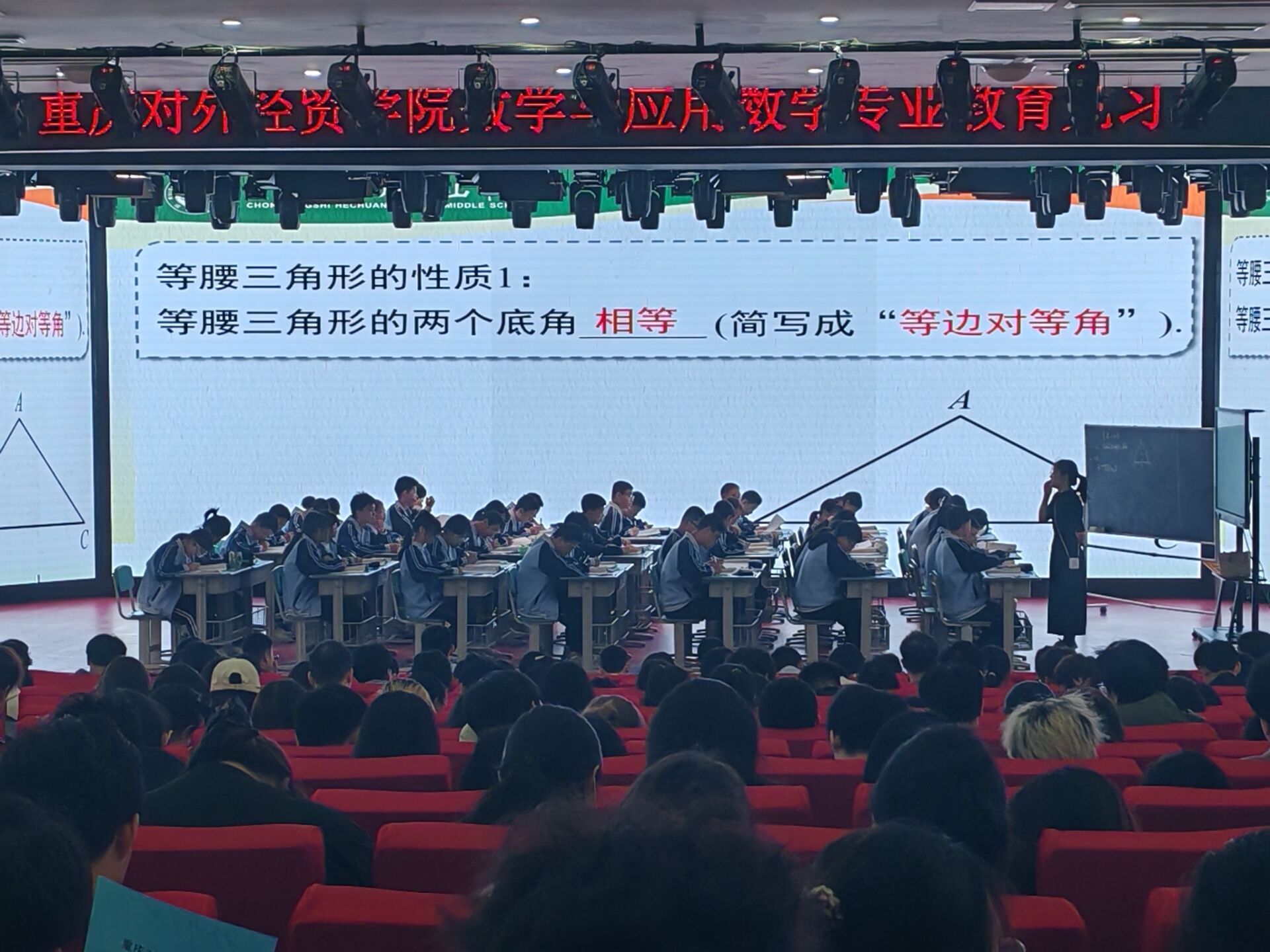 上午,初二数学韦老师以“等腰三角形的性质”为主题,通过生动有趣的讲解和互动,使学生们深刻理解了等腰三角形的性质和判定方法。老师巧妙地运用几何图形和实例,引导学生们进行思考和讨论,课堂气氛活跃,教学效果显著。学生们认真观察、记录教学要点,从中学到了很多教学技巧和方法。