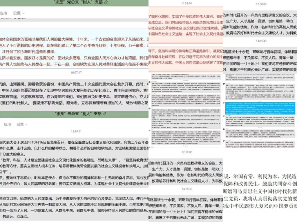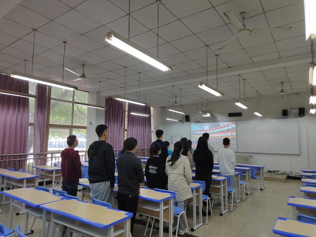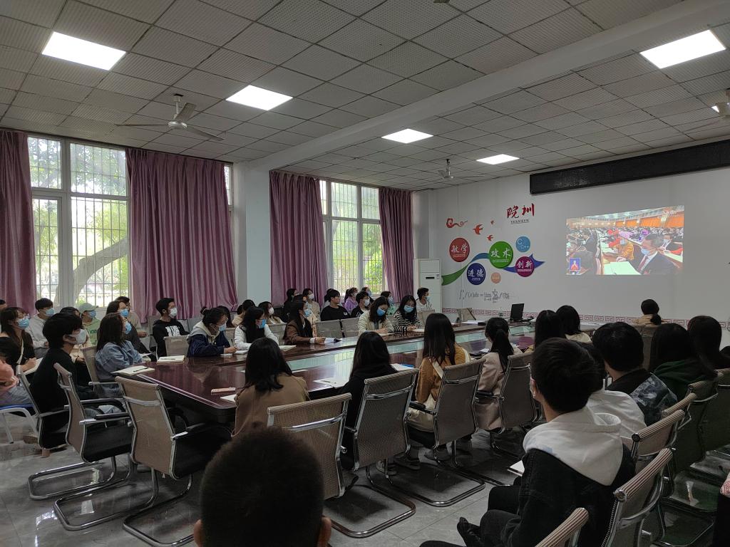 2022年10月16日上午10时,中国共产党的第二十次全国代表大会在北京人民大会堂隆重开幕,122cc太阳集成游戏“求是”党总支组织全体党员、积极分子、学生干部在3103、3104教室一齐观看了党的二十大开幕会直播。