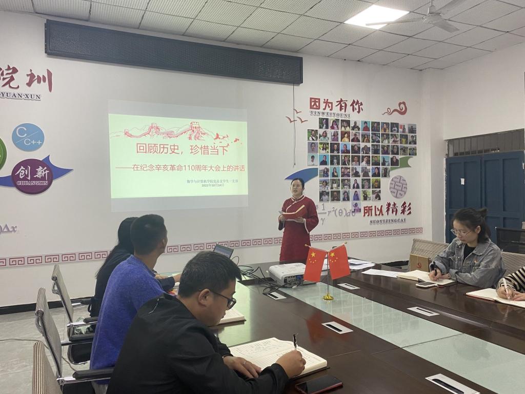 学生一支部书记何庆龄带领全体党员同志一起开展以“回顾历史,珍惜当下——在纪念辛亥革命110周年大会上的讲话”的微党课学习。