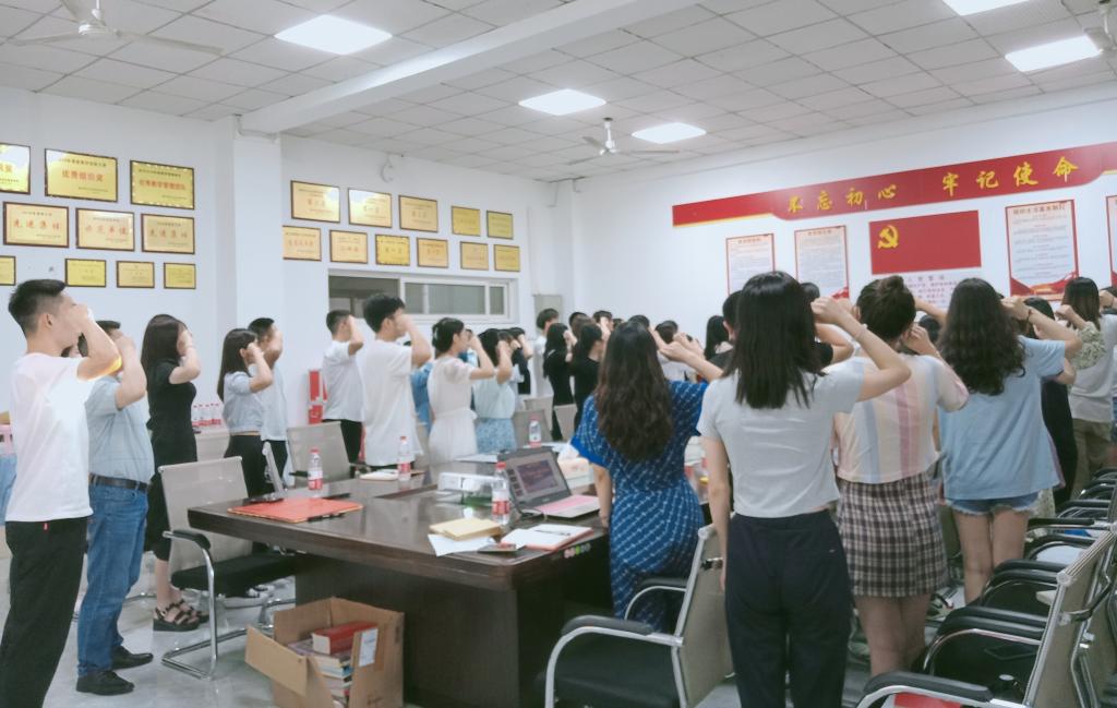会上,首先以视频回顾的方式总结了毕业生党员们自入党以来的点点滴滴,一起回望初心,见证成长。紧接着在龚思源同志的带领下重温了入党誓词。全体党员同志高举右手,再次庄严宣誓,党员同志们铿锵有力的声音,表达了对党的无限忠诚,表达了全心全意为人民服务、为共产主义奋斗终生的决心。