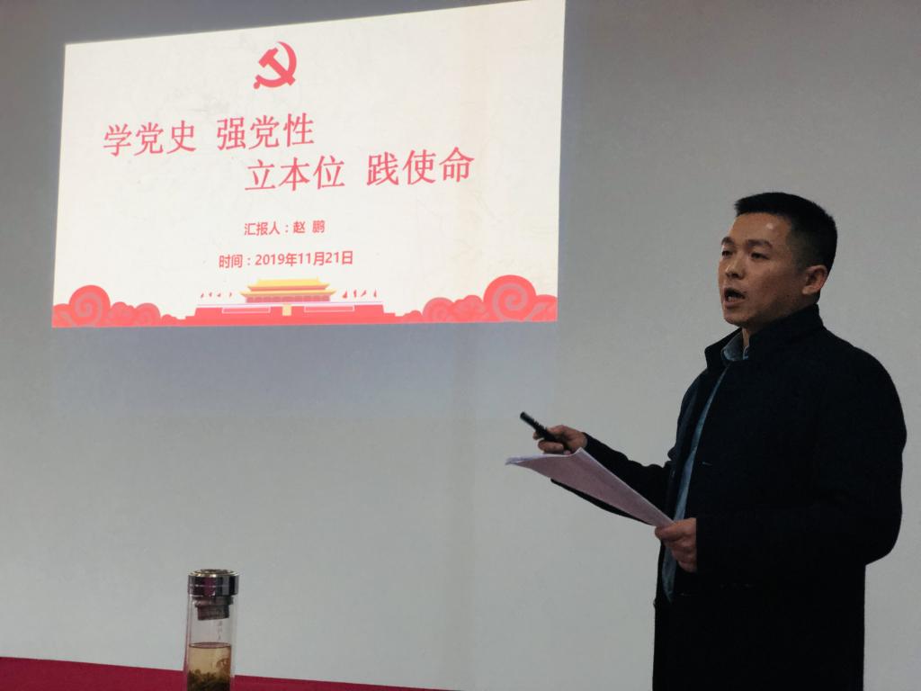 为进一步深入开展“不忘初心、牢记使命”主题教育,贯彻落实“三会一课”制度,强化广大党员的身份意识。2019年11月21日下午,122cc太阳集成游戏党总支书记赵鹏在3103A会议室以“学党史 强党性 立本位 践使命”为主题为全体党员上了一堂精彩的党课。