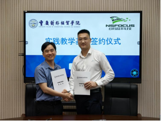 在签约仪式上,双方分别签署了校企合作协议、实践教学基地合作协议;并为绿盟科技集团股份有限公司授予实践教学基地牌匾。
